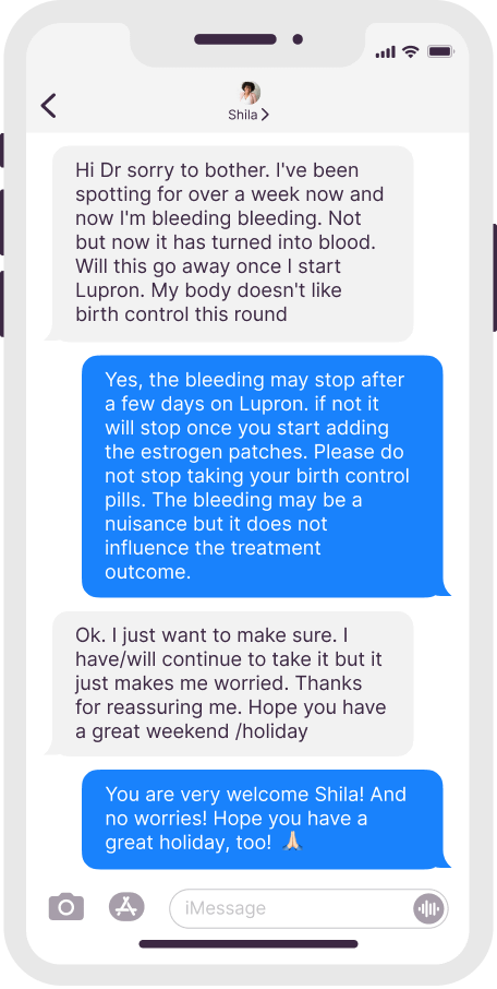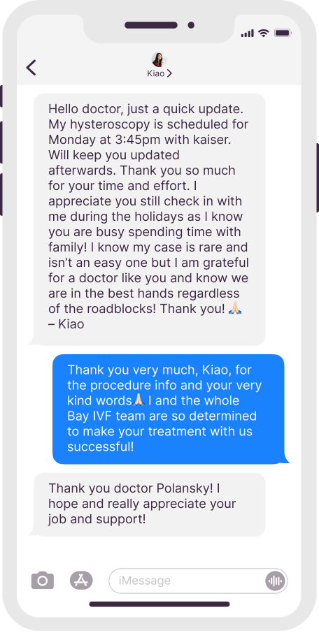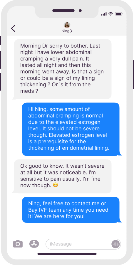 If you have any questions after leaving the clinic, please feel free to reach out to us via phone call, text, or email. Open and discreet communication is an integral part of the care we provide at Bay IVF