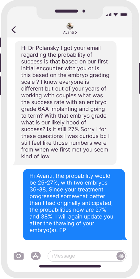 Dr. Polansky will ask you a series of clarifying questions and then provide you with a summary of the factors contributing to your infertility