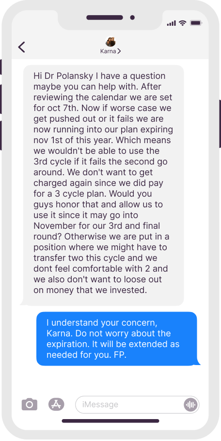 Jennifer C.-F.This clinic has been amazing to work with. All the nurses and staff made sure I was always comfortable and were there to answer questions any time I needed. We are incredibly grateful to Dr. Polansky and the team for everything they did for us.